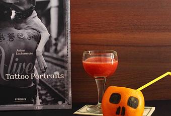 Pour ce troisième volet de notre rubrique Read & Drink, j’ai eu envie de vous faire partager l’univers du photographe Julien Lachaussée qui a sorti son premier livre il y a un peu plus d’un an : Tattoo Portraits. Un livre que j’ai découvert récemment et qui mérite vraiment le détour. Pour la boisson, une bonne bière fera l’affaire, mais si vous avez envie de pousser l’expérience jusqu’au bout, vous pouvez toujours préparer mon smoothie fraise-orange sanguine. Pour l’occasion, je me suis prêtée au jeu du tatouage en tatouant le contenant. A boire donc dans une orange tatouée… oui dit comme ça c’est étrange. Merci à mon pote Corentin, aka I am Hurricane pour le prêt du matériel et l’atelier tatouage chez lui, j’ai adoré !