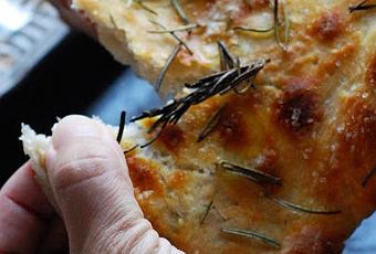 Fett'unta 600g de pâte à pain (pour faire 2 portions, une grande-22x30 - et une petite -18x18-) – du romarin frais – de l'huile d'olive utilisez une huile bien parfumée – de la fleur de sel – du poivre Commencez en huilant légèrement au pinceau vos plats métalliques. Farinez votre table et étalez bien votre pâte, attention seulement à la main pas question de sortir le rouleau à pâtisserie pour ça. Quand la pâte est bien grande, posez-la dans le plat et toujours délicatement étalez-la jusqu'à le remplir complètement.Piquez la surface avec une fourchette. Versez un joli filet d'huile sur la pâte, soyez généreux. Saupoudrez le tout avec du romarin et du sel. Enfournez dans un four préchauffé à 250° pendant 15minutes. Poivrez à la sortie du four, moi j'ai oublié, puis coupez en beaux carrés croquants et odorants et vous allez voir, la fett'unta a une tendance à la disparition plus que rapide !