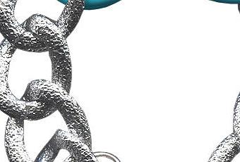 Bracelet constitué de larges maillons en aluminium d’aspect scintillant, et de 3 maillons en acrylique colorée.