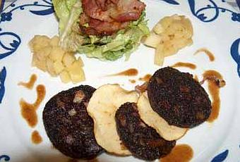 Boudin landais aux deux pommes et ventrêche roulée aux épices basques