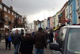 Après avoir pris le train à l'aube pour 6h de très long voyage, me voila arrivée. L'après-midi est déjà bien entamée, alors nous décidons d'aller visiter le quartier de Notting Hill, et en particulier la brocante de Portobello Road, ouverte seulement le samedi.