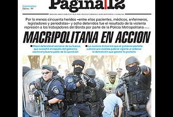 Pour aller plus loin : lire l'article à la une de Página/12 lire l'article de Página/12 sur les mesures pénales infligées par la justice (seront-elles suivies d'effet ?) lire l'article de Página/12 sur les explications données par Mauricio Macri à la presse lire l'article de Página/12 sur les condamnations émises par l'opposition portègne et la majorité nationale lire l'article principal de Clarín, dont un photographe a été frappé, blessé et menoté lors d'une arrestation musclée et publique dont son collègue de La Nación a pris des clichés très compromettants pour les forces de l'ordre lire l'article de Clarín sur les déclarations publiques de Macri hier soir lire l'article de Clarín sur les agissements de la Métropolitaine lire l'article de Clarín sur les déclarations de Montenegro devant la Legislatura lire l'article de La Nación sur les incidents lire l'article de La Nación sur le plaidoyer pro domo de Mauricio Macri
