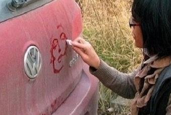 En Chine du nord, une jeune architecte paysagiste chinoise était trop paresseuse pour laver sa voiture. Avec la poussière sur la surface du coffre, elle a dessiné un magnifique portrait de Marlyn Monroe.