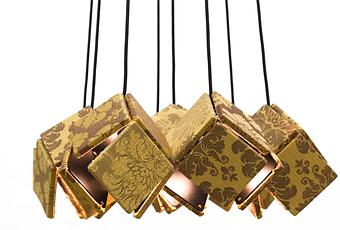Lichtkammer est une collection de luminaires suspension imaginée par Harry Thaler pour Fratelli Bologna e Marcaccio, un éditeur italien spécialisé entre autre dans les tissus de jacquard, de soie et de coton. Cette suspension est représentative du travail de l’artiste, qui explore le monde à travers des objets réinventés, avec une élégance constante et surprenante. Les tissus traditionnels sont ici mis en scène dans un nouveau contexte. La collection est réalisée en jacquard de soie, métal, baril de pétrole. La collection Lichtkammer a été conçue pour une exposition à Benevento.