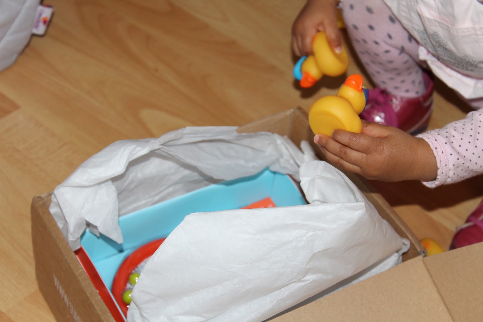 Encore une fois j'aime les boîte à goodies et à joujou, car on ne sait vraiment pas à quoi s'attendre. L'effet de surprise est vraiment au rdv. Je l'ai ouverte avant que ma fille rentre de chez la nounou afin de faire les photos et surtout avant qu'elle ne s'approprie son contenu...