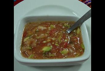 - Couper l'oignon, les piments, l'ail, puis mélanger le tout aux tomates. Presser le citron, ajouter le jus à la préparation.