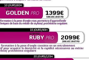 L'offre de formation à la Pose d'Ongles en Gel UV a été revu pour vous proposer toujours le meilleur de la prothésie ongulaire. Au menu 4 modules de formation afin de coller encore mieux aux attentes des stagiaires: