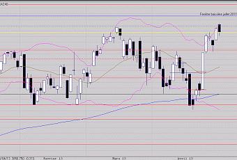 Il faut sans doute y voir ici une phase de consolidation des 2 franchissements et non pas, si l'on considère la bougie noire formée en figure de nuage noir, un éventuel départ baissier.