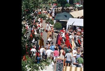 Chevaliers, templiers, saltimbanques et ménestrels s’emparent des rues et places, tandis que les domaines viticoles proposent leurs crus en dégustation à la charrette.