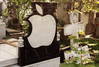 Humour noir jusqu'au bout... Un momnument funéraire, avec pour forme, le logo d'Apple.