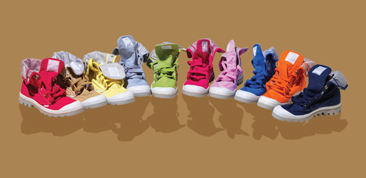 Ce n'est un secret pour personne : la crise est belle est bien installée ! Pour ma part, plus que jamais je fais attention au moindre euro dépensé et tout est prétexte à économie. Aussi, j'ai trouvé le nouveau produit "Prêt-à-teindre" de la marque Palladium idéal pour allier multiples looks et économie.Avec ce nouveau procédé, Palladium permet de teindre ses "Baggys" grâce à un simple lavage en machine. Vous pourrez ainsi teindre et reteindre à volonté vos chaussures selon vos goûts, vos humeurs ou vos looks (et en plus, c'est facile !).