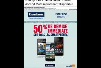 En ce moment The Phone House offre 50% de remise immédiate sur tous les smartphones liés à un abonnement sur Orange.