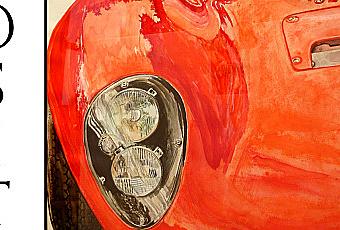 J'ai choisi pour illustrer l'affiche de cette exposition une aquarelle représentant une Dino Ferrari 206 GT.