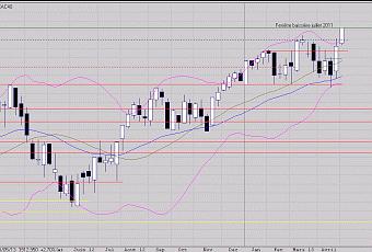 Les 300 points de hausse acquis en 2 semaines ont permis tout d'abord de franchir la résistance des 3845 points (issue de l'effondrement de mai 2010) qui avait fait rechuter l'indice sur les 3600 points.