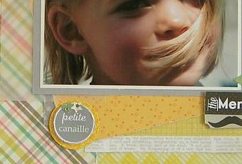 La première étape est l'Illinois avec les contraintes suivantes : le jaune est dominant, des ronds, au moins une étoile et .....des moustaches !!!! Moi qui n'ai que des filles le challenge n'était pas aisé, mais c'est ce qui en fait le charme et nous permet de sortir de notre zone de confort, non? voici donc ma page