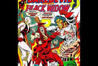 Il fallait oser! Impliquer Daredevil dans une menace d'ordre cosmique (Thanos prépare la destruction de la Terre pour les beaux yeux de la mort. Il va mettre la main sur le Cube Cosmique) et le faire côtoyer des calibres comme Mar-Vell ou encore Dragon Lune. Cette dernière lui rend même momentanément la vue, grâce à ses pouvoirs sur l'esprit, mais Matt se rend compte que ses super sens lui sont bien plus utiles qu'une simple paire d'yeux pour son travail quotidien.Voilà un triptyque d'épisodes sympathiques à (re)lire, indicatifs de comment les comic-books étaient traités sur un mode plus naïfs et romancés sans trop se perdre dans des considérations d'ordre réalistes, à l'époque des seventies. Steve Gerber en fait des tonnes et parfois le résultat est un poil confus, alors que Don Heck dessine le tout avec un style rétro qui n'aurait pas dépareillé dix ans plus tôt, et très anguleux. Beaucoup de personnages dans des cases souvent trop petites, et énormément de verbiage, mais aussi le charme d'aventures totalement désuètes qui nous plonge dans la face cachée de Daredevil, quand Murdock vivait des rebondissements aussi farfelus qu'imprévisibles. Publiés dans Strange 101 à 103 en 1978.