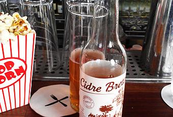 Pour l’apéro, je me réjouis de voir du cidre breton à la carte (parce que je trouve que le cidre anglaise à un vrai goût de pisse). Il commande un verre de Syrah Grenache. Un peu de pop-corn vient agrémenter l’attente. Je parcours la carte. C’est un peu le bordel, on a l’impression au premier abord de devoir résoudre une énigme, mais on repère vite l’essentiel: les desserts!