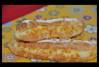 Découvrez la recette des Eclairs au praliné et sa crème vanille, éclats de nougatine !