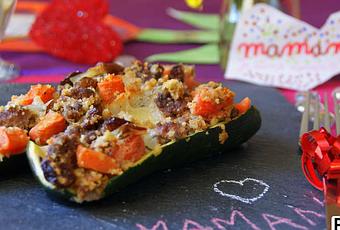 8- Reprenez vos « Bateaux » de courgettes et garnissez-les de votre préparation.