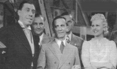 Mais de notre côté de la frontière les choses ne sont pas non plus bien glorieuses, en me baladant sur le net j'ai eu la triste surprise de découvrir le cliché suivant où nous pouvons découvrir Fernandel aux côtés de Elvira Popesco et Goebbels. Ne connaissant pas le contexte de cette photo et ceci malgré les apparences laissons le doute au doute et ne jugeons pas trop vite.