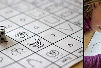 Une fois cette partie dessinée, chacun lance à nouveau le dé et le numéro indique une autre forme à reproduire, mais cette fois, à partir de la deuxième colonne. Et ainsi de suite, jusqu’à la dernière colonne.