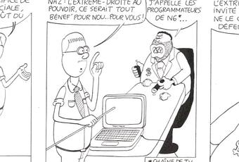 « Les banksters vont ramener le fascisme en Europe » nous dit-on. Cette bonne blague… Comment s’en étonner ? Il suffit de lire le programme du Front National pour comprendre que les gros capitalistes ont tout intérêt à ce que l’extrême-droite prenne du poids… Cliquez pour lire le strip ci-dessous dans son intégralité.