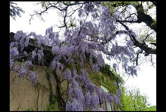 J'ai bien fait de photographier les iris juste éclos hier. Ainsi que la glycine qui s'attaque bravement aux plus hautes branches du noyer qui sépare la maison d'Anne-Christine de celle de Florence. Après la pluie, je gage que bien des pétales seront tombées.