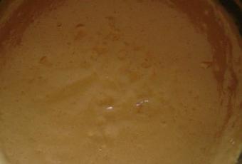 2) Battre les jaunes d'oeufs et le sucre. Ajouter la farine, mélanger.