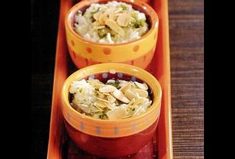 - Dès la fin de la cuisson, ajouter l'eau de rose et les pistaches. Mélanger vigoureusement, puis répartir le riz dans des coupelles et parsemer d'amandes effilées.