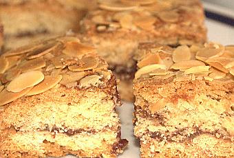 -Étalez une fine couche de confiture dessus et parsemez généreusement d’amandes effilées.