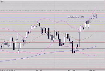 Une baisse sous ces 3913 points lancerait la correction de la hausse démarrée mi-avril avant de relancer celle-ci. Sa cible se situerait alors dans la zone des 3795 points à 3855 points.