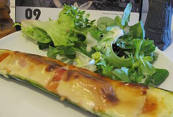 Préchauffez le four à 200°C 1: Lavez la courgette. Coupez-la dans la longueur, épépinez en raclant à la cuillère.