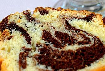 Pour un petit moule à cake:- 3 œufs-125 gr de sucre glace- 180 gr de farine-125 gr de beurre- 5 g de levure (selon ce qu'il y a écrit derrière le sachet)-2 càc de vanille-1 càs de chocolat en poudre non sucré-3 càc de pâte de noisettes ici************************Monter deux blanc en neige ,Dans un robot, vitesse lente blanchir les deux jaunes restant et l’œuf entier au sucre glace Intégrer la farine et la levure tamisée ensemble au mélange oeuf /sucreFaire fondre le beurre et l'intégrer au reste avec la vanilleA la maryse , intégrer les blancs d’œufs montés en neige.Séparer la pâte en deux , dans l'une des deux rajouter la pâte de noisettes et le chocolat.