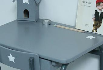 J'ai customisé le petit tiroir en y collant du tissu autocollant gris à pois blanc de la marque TOGA.
