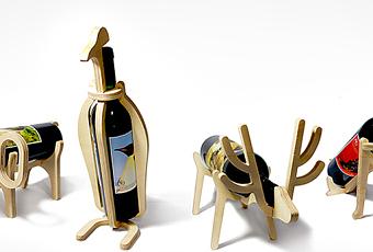 Le designer Choi Jinyoung pour Conte bleu a imaginé des supports très originaux pour bouteilles en contreplaqué reprenant la silhouette de différents animaux