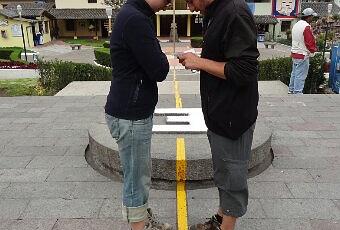Nous sommes chacun dans un hémisphère différent !!! Nicolas est au sud et moi au Nord. Et vous nous voyez en train de prendre notre photo de pied