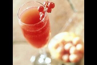 - Compléter avec le champagne. Décorer avec une petite grappe de groseilles.