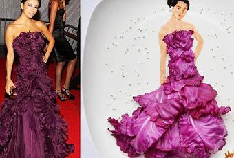 Red Hong Yi ne manque pas d’imagination ! La Food Artist a réussi à reproduire une robe de tapis rouge portée par Eva Longoria avec du chou rouge !