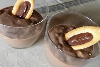 Compter uen banane bien mure par verrine et un yaourt au chocolat "Mamie Nova" pour deux.