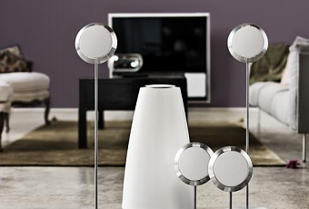 Compatible avec toutes sortes de téléviseurs et considérées comme un modèle d’entrée de gamme par la firme, le BeoLab 14 est disponible depuis hier à partir de 2995€ dans une configuration 4.1 dans divers coloris de tissu (noir, blanc, rouge, bleu ou gris moyennant quelques frais supplémentaires). Articulées autour d’un ampli cylindrique capable de délivrer 280 watts, vous aurez la possibilité de fixer les quatre satellites de 140 Watt chacun aux murs ou de les installer sur des supports en aluminium prévus à cet effet.