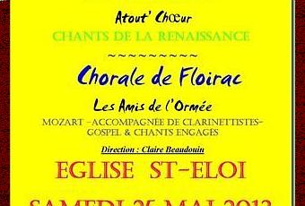 Dirigées par la soprane Claire BEAUDOUIN, une sélection d'oeuvres à voir et écouter, interprétées par les chorales 'Atout Choeur' d'Arès et 'les Amis d'Ormée' de Floirac.