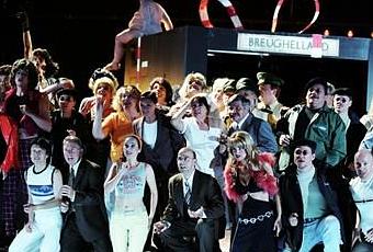 La mise en scène de Barrie Kosky prend au mot cet épilogue. Son travail est marqué par la question du sexe, de la mort (eros/thanatos) mais aussi celle du pouvoir, ou de(s) (la) religion(s)dans une farandole diabolique, une danse macabre éperdue où tous les excès sont permis, y compris scatologiques. Il présente la vision d'un monde en fin de vie, éperdu de jouissance et de plaisir, où plus rien n'a de sens; un de mes amis italien a confié..."une métaphore de l'Italie des vingt dernières années" on pourrait dire aussi une métaphore du monde contemporain, ayant perdu tout sens de la quête, vivant au jour le jour le plaisir pour le plaisir dans une progression inexorable vers la destruction: la vision de la cour du Prince Go Go a quelque chose d'un monde berlusconien, où tout est bunga bunga, où tout est orgie. Elle permet ainsi de passer en revue la liste inépuisable des dérives sexuelles, où l'imagination est sans limites dans une valse qui épuise le spectateur, avec des images puissantes (la foule poursuivant les ministres l'arrivée de la comète sur la ville) non toujours dépourvues de poésie.