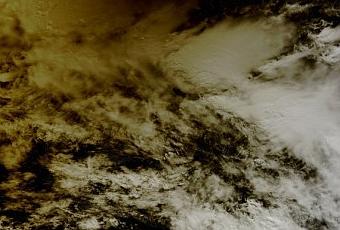 Le satellite Terra de la NASA, qui surveille la Terre, a capturé l’ombre de la lune assombrissement une zone de l’océan Pacifique durant l’éclipse solaire (en entête). Les nuages blancs lumineux disparaissent dans l’obscurité au nord-est de l’Australie. L’ombre mesurait 172 kilomètres à partir de ces extrémités les plus éloignées.