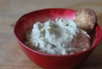 Mettre la chair recueillie dans le bol d'un mixer avec 1 c. à s. de jus de citron, la purée de sésame, une pincée de sel et 1 c. à s. d'eau ou de lait végétal. Mixer pour obtenir une texture homogène, en rajoutant éventuellement un peu de liquide. Ajuster l'assaisonnement et servir bien frais.