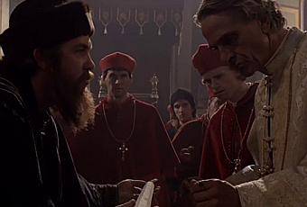 Mais pour le moment cette introduction est faite de façon intelligente. On ne s'ennui pas du tout et je dirais même que le suspense est réellement plaisant. La tension que The Borgias parvient à créer n'est pas unique mais elle est de plus en plus fascinante. Les personnages sont tous plus ou moins à une place réellement intéressante. Et puis nous avons Alexander qui se retrouve encore une fois dans ses histoires de papauté. Je ne suis pas fan de cette histoire de reliques. J'aurais bien aimé quelque chose d'un peu plus pimenté pour le personnage alors qu'il perdait son amour. Les aventures du Vatican ne gagnent donc pas forcément avec ces histoires mais Jeremy Irons incarne si bien le personnage qu'au fond il pourrait agiter un plumeau tout un épisode, je crois que l'on pourrait même crier au génie.