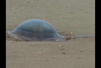 La méduse ne craint a priori rien de l’homme : c’est lui qui la fuit comme la peste, puisque la bougresse, outre son aspect peu appétissant, injecte un charmant venin aux pouvoirs urticants, ceux-ci pouvant même être dangereux. La maousse échouée sur le sable, en photo en haute à droite, ne fait pas partie des méduses les plus dangereuses, mais, dans l’eau, la bête impressionne. Ainsi posé par la marée redescendue plus vite que le cnidaire (car les méduses sont des cnidaires, profite de ce blog pour enrichir ton vocabulaire), l’animal pourrait, de loin, évoquer une tortue marine : c’est fou comme l’envie de tropiques se manifeste en novembre mai.