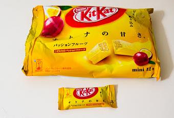 Hier en me prenant dans une rue couverte de Gion je suis tombée sur cette variété de KitKat. Le paquet de 12 était à 198 yens. Ce n'était pas cher alors sans hésiter je l'ai ai acheté. C'est la première fois que je découvrait ce parfum, un vrai régal !!! On sent bien le goût du fruit.