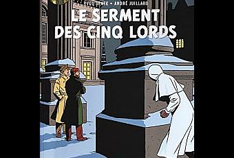 « Blake et Mortimer » est une série pour laquelle je ressens une réelle affection. Je l’ai découvert dans la bibliothèque parentale. J’ai toujours pris beaucoup de plaisir à me plonger dans les aventures des deux héros. Cet univers a survécu à son auteur grâce à des scénaristes tels que Jean Van Hamme ou Yves Sente. Cette deuxième vie a donné naissance à des opus globalement de bonne qualité. Beaucoup affirmeront que la magie de Jacobs a disparu avec sa mort. Personnellement, je trouve que ses successeurs offre une suite très honorables aux pérégrinations des deux britanniques. J’espérais donc que le dernier tome paru, « Le serment des cinq lords », confirme ce sentiment positif. Il est apparu dans les rayons le quinze novembre dernier. Il est l’œuvre conjointe d’Yves Sente et d’André Juillard.
