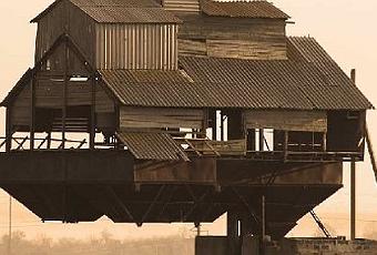 Cette forme de structure pour le chargement des camions est courante dans les régions agricoles de l’Ukraine. Celle-ci était en cours de démantèlement, ce qui lui donne un aspect étrange et suréaliste. L’étrange bâtiment n’est plus visible car il est entièrement démantelé.