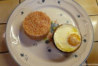 J'ai servi mes oeufs cocotte avec du riz pilaf à la sauce tomate.